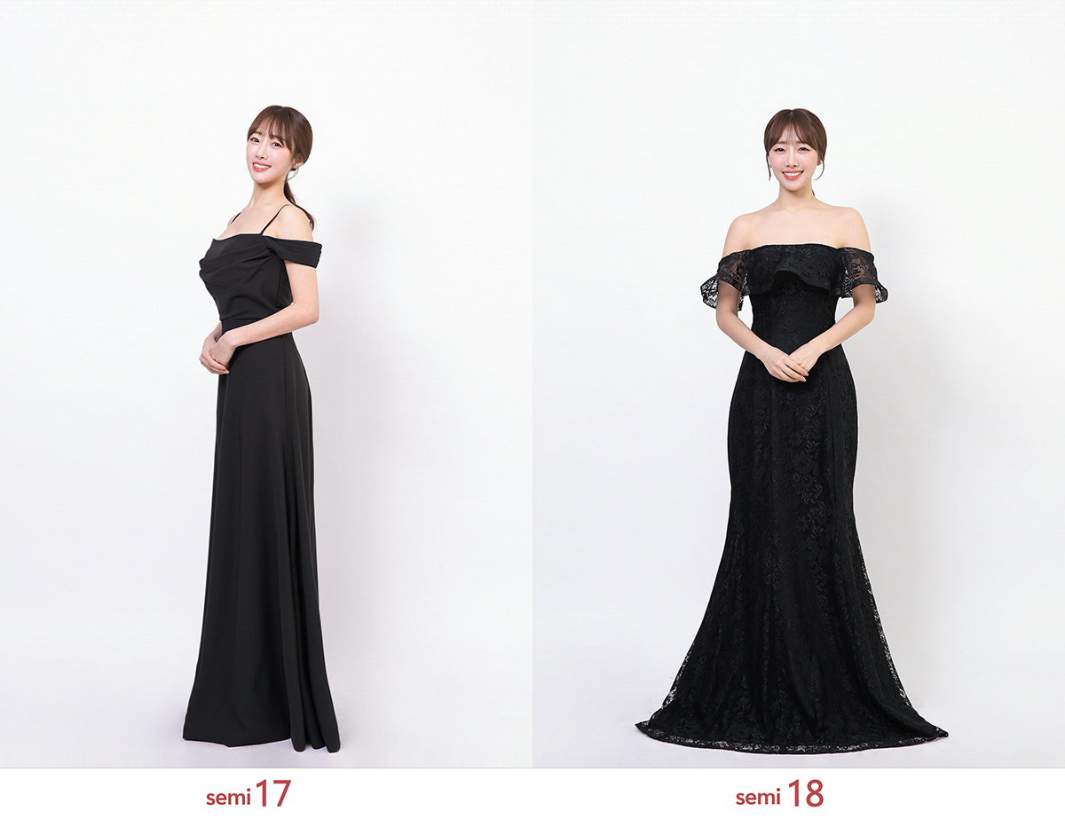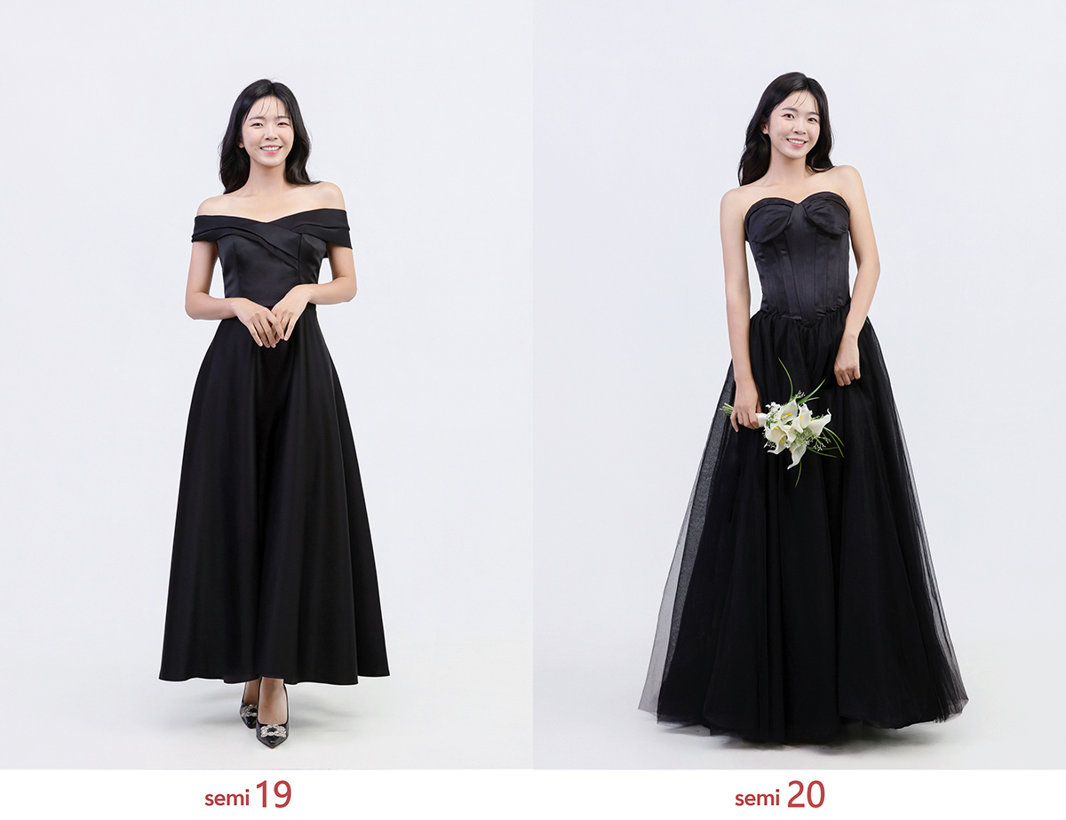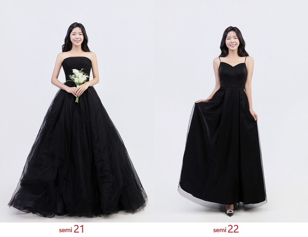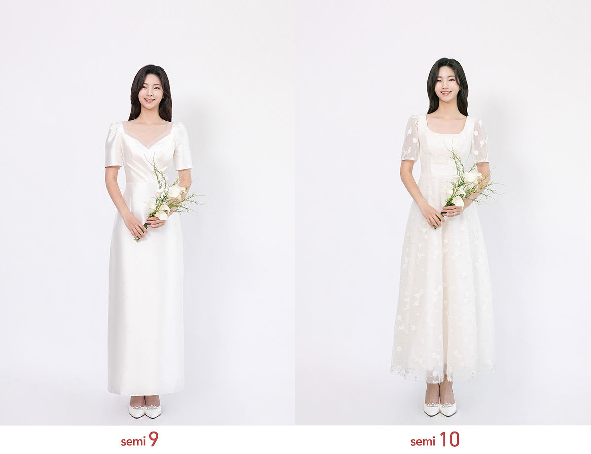 풍성한 라인의 (A드레스는) L~XL 사이즈도 촬영 가능하며 A 탑 드레스는 99사이즈도 가능해요.